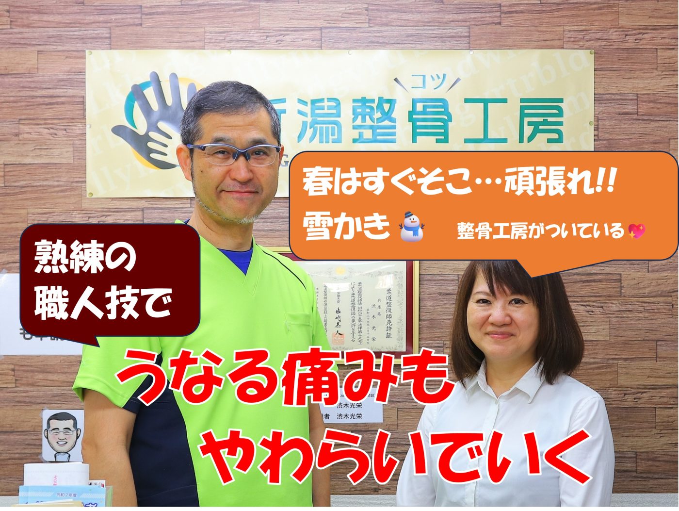 2月も中旬を過ぎれば新潟にも春は確実に近づいてきます。あともう少し!!頑張れ雪かき!!…急に無理をして体を痛めた時は早めに当院へご連絡ください。